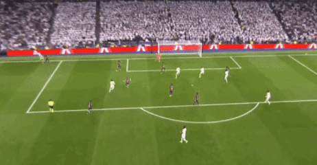 就在巴萨士气正盛时,第43分钟,维尼修斯下底传中,米利唐头球摆渡,贝林厄姆门前补射再度得手!2-1!1.8亿欧元的英格兰中场成为伯纳乌的英雄。